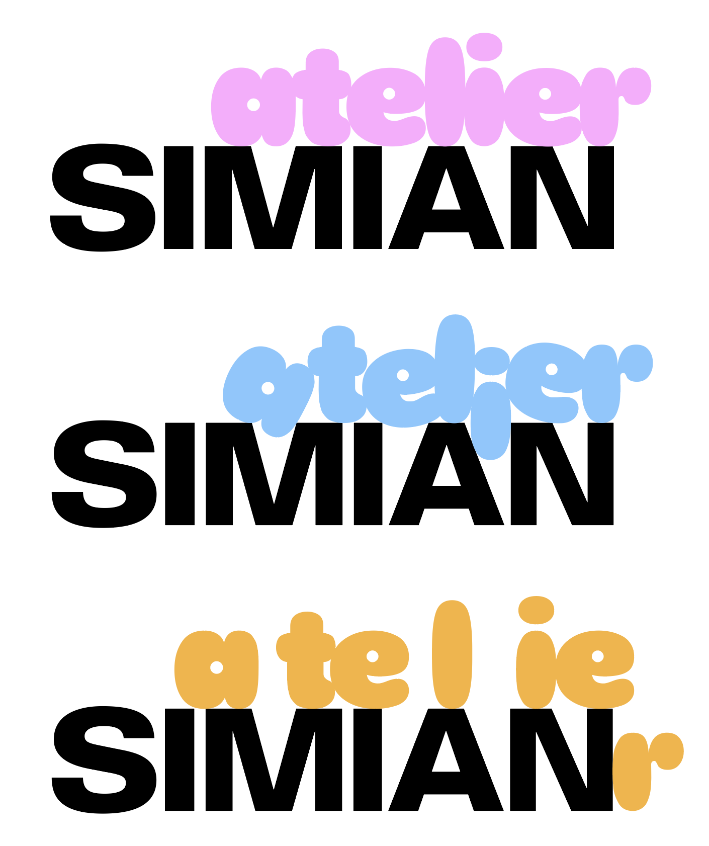 SIMIAN atelier: Variable logos for the art programme for children at SIMIAN. The logos were conceived as an intervention in SIMIAN's preexisting visual identity, designed by Wrong Studio.
