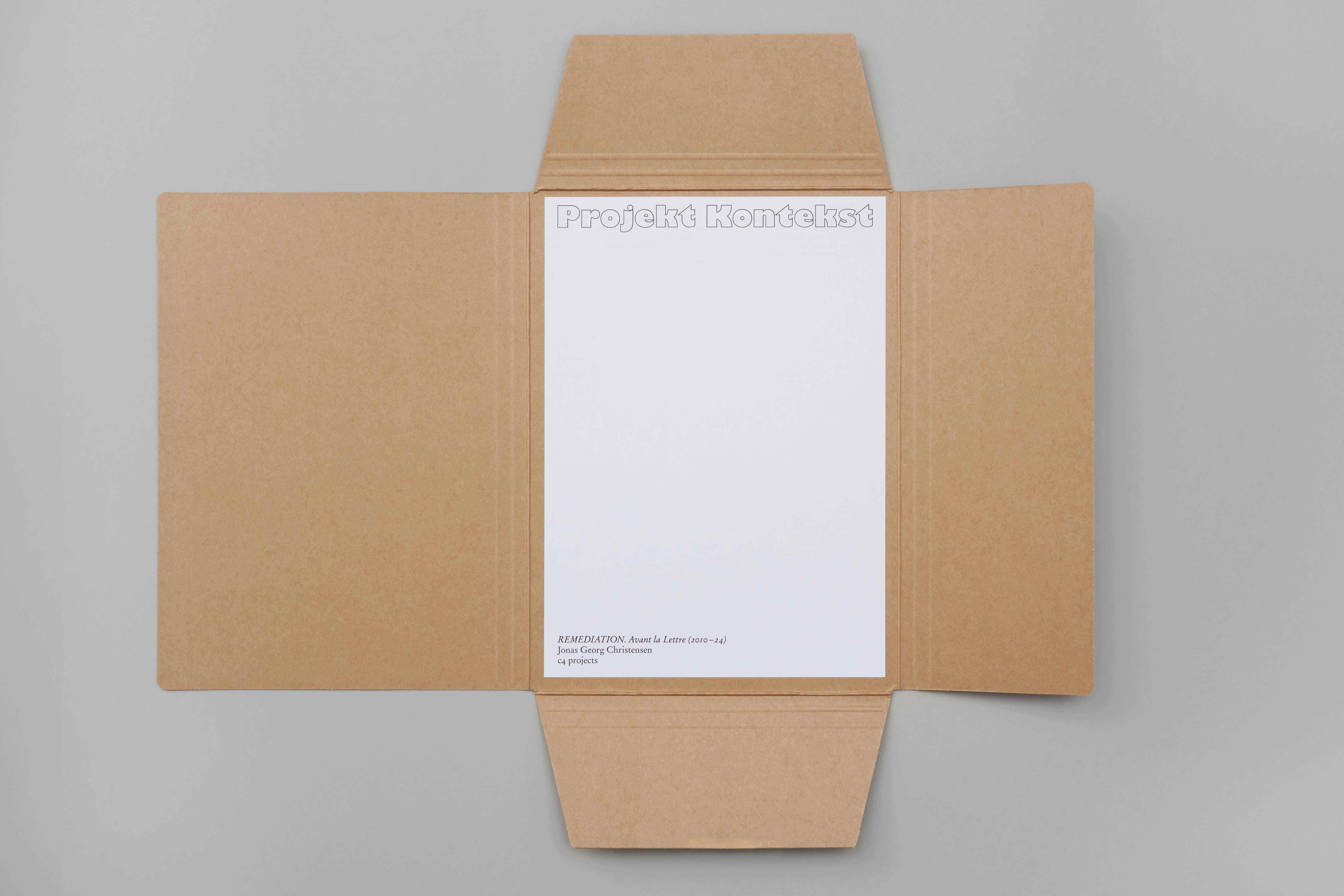 Jonas Georg Christensen: Projekt Kontekst – catalogue for the exhibition REMEDIATION. Avant la lettre (2010–24) at c4 projects. With contributions by Jørn Erslev Andersen, Maria Finn, Lars Bang Larsen and Anne Munnecke. Published by Udg. Txt. 2024