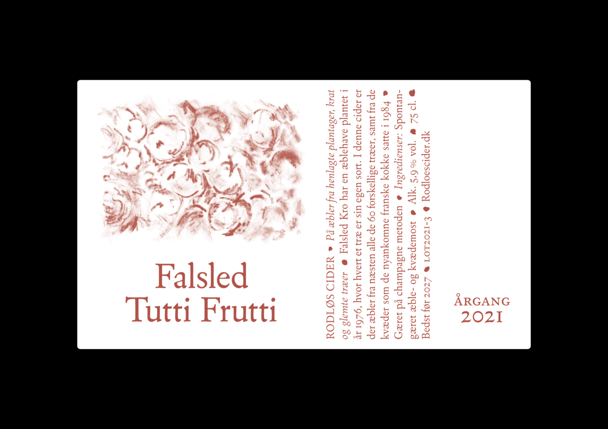 Drawings and labels for Rodløs Cider. 2019–2022